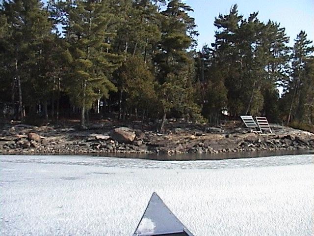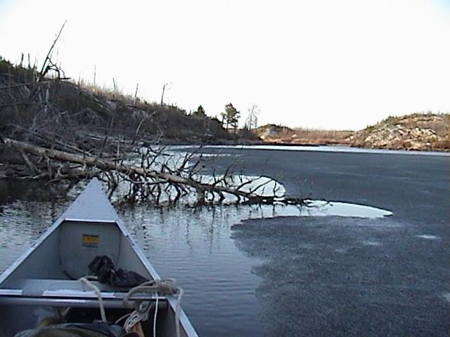 canoe, I paralleled the shore and broke ice until I was in a shallower