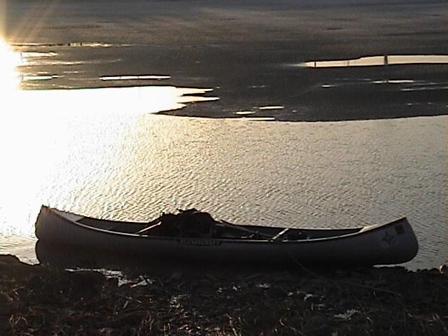 was able to beach the canoe upon the ice.
