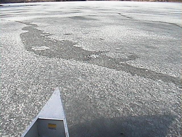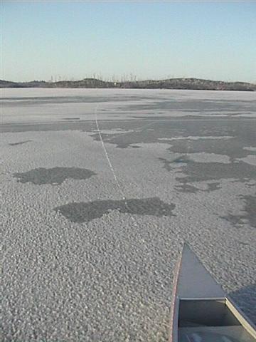 The aluminum canoe slid effortlessly on the bare, rough-textured ice.