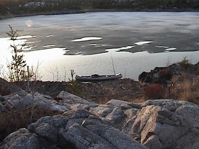 canoe into the skim of ice that had formed during the night. "